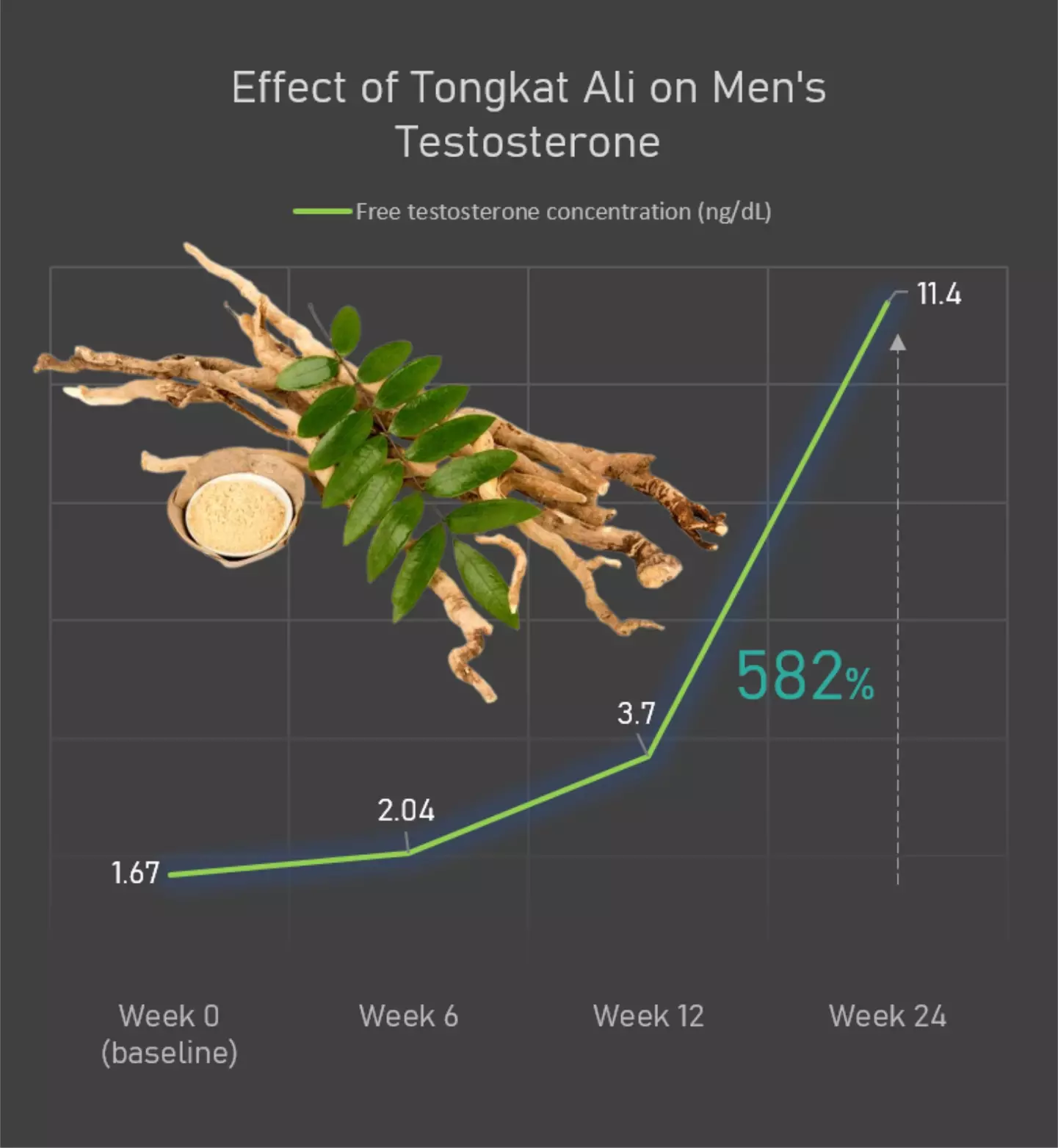 Adaptophen can help you naturally boost free testosterone through its key ingredient Eurycoma Longifolia: A medicinal plant commonly referred to as Tongkat Ali (TA). In a recent study published in the Journal of the International Society of Sports Nutrition, men supplementing with the same amount of Tongkat Ali included in Adaptophen experienced a 37% increase in free T levels in just 28 days.1